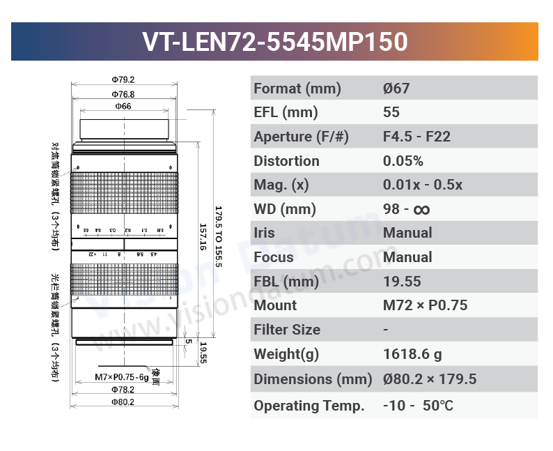 25 мм 35 мм 50 мм Фокусное расстояние Опционально