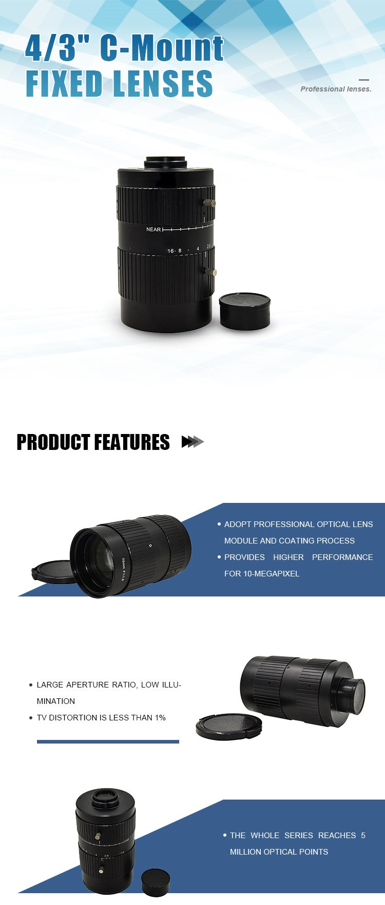 4/3'' 10MP C-Mount Ultra Low Distortion CCTV lens For Machine Industrial Camera